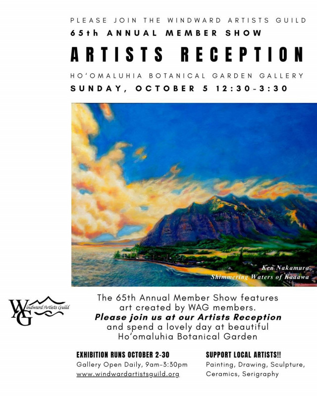 The talents of the Windward Artists Guild are on display until October 30, 2025 at the Hoʻomaluhia Botanical Garden Gallery. The gallery is open 9:30 am – 3:30pm daily. The exhibit is also posted on this site, and during the time period of the show, the art is for sale online here. The exhibit also features a memorial art show for David Friedman, a member of the guild for many years. His painting, “Kawainui Marsh” is shown above.